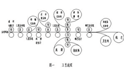 嬰兒紙尿褲生產線機主要設備由以下組成: 8套開卷裝置、 8臺復合輥和壓輥、6臺切刀輥及折疊和疊碼裝置.其工藝流程如圖1所示。