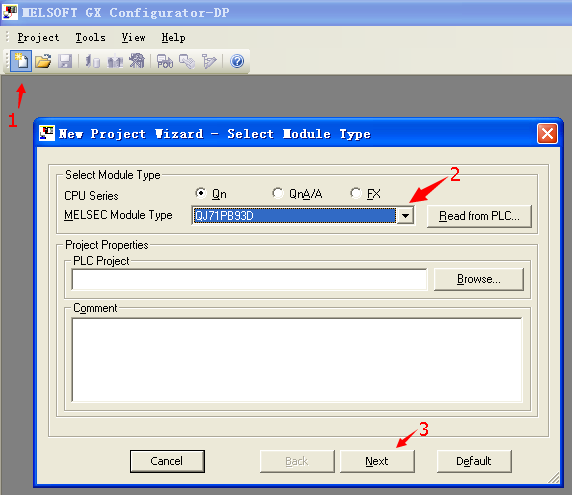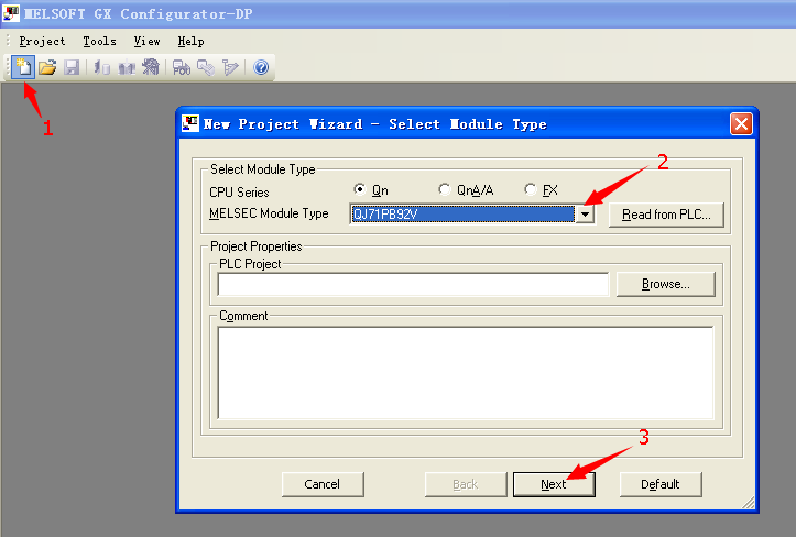 1、新建 2、選擇型號(hào)QJ71PB92V 3、下一步(如圖d)