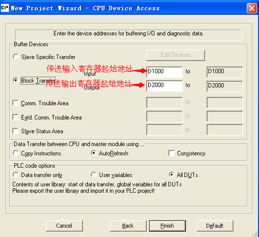 1、新建→2、選擇型號(hào)QJ71PB93D→3、下一步,如圖j,插槽位置、填寫從站站號(hào),(如圖k)填寫從站輸入輸出寄存器數(shù)。