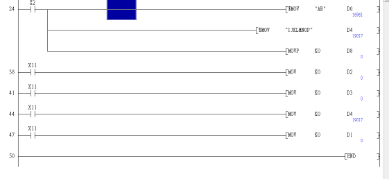 HEX指令:與ASC指令正好相反,K4同樣表示轉換幾個字符串,D0=K13879先轉換為二進制
