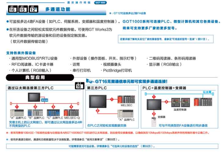 5、提問:三菱的觸摸屏 GOT1000系列是否直接能連接溫度調節器/ 指示調節計、變頻器、伺服放大器、CNC 等 FA 設備?