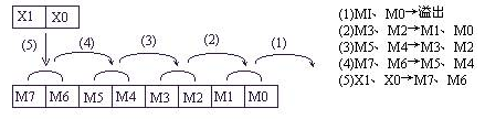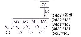 SFTRP M0 M20 K16 K4 意思是:當條件成立時,將M3M2M1M0右移到M35M34M33M32M31M30M29M28M27M26M25M24M23M22M21M20中去,每次移4位,低位溢出。