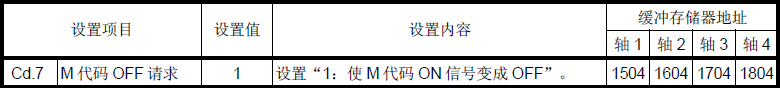 當M代碼ON 信號(X4、X5、X6、X7)為ON 時,必須通過順控程序使它變成OFF。為了使M代碼ON 信號變成OFF,在“ Cd.7 M 代碼OFF 請求”中設置“1”。