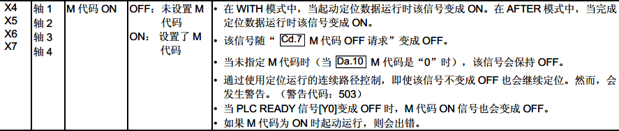 當M代碼ON信號(每個軸對應X4、X5、X6、X7)變成ON時,“M代碼”存儲在下列緩沖存儲器中。