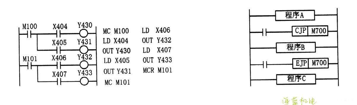 電路結束時不必使用復位指令 M RC ,因為執(zhí)行指令 MC 后,原公共母線會自動恢復。到