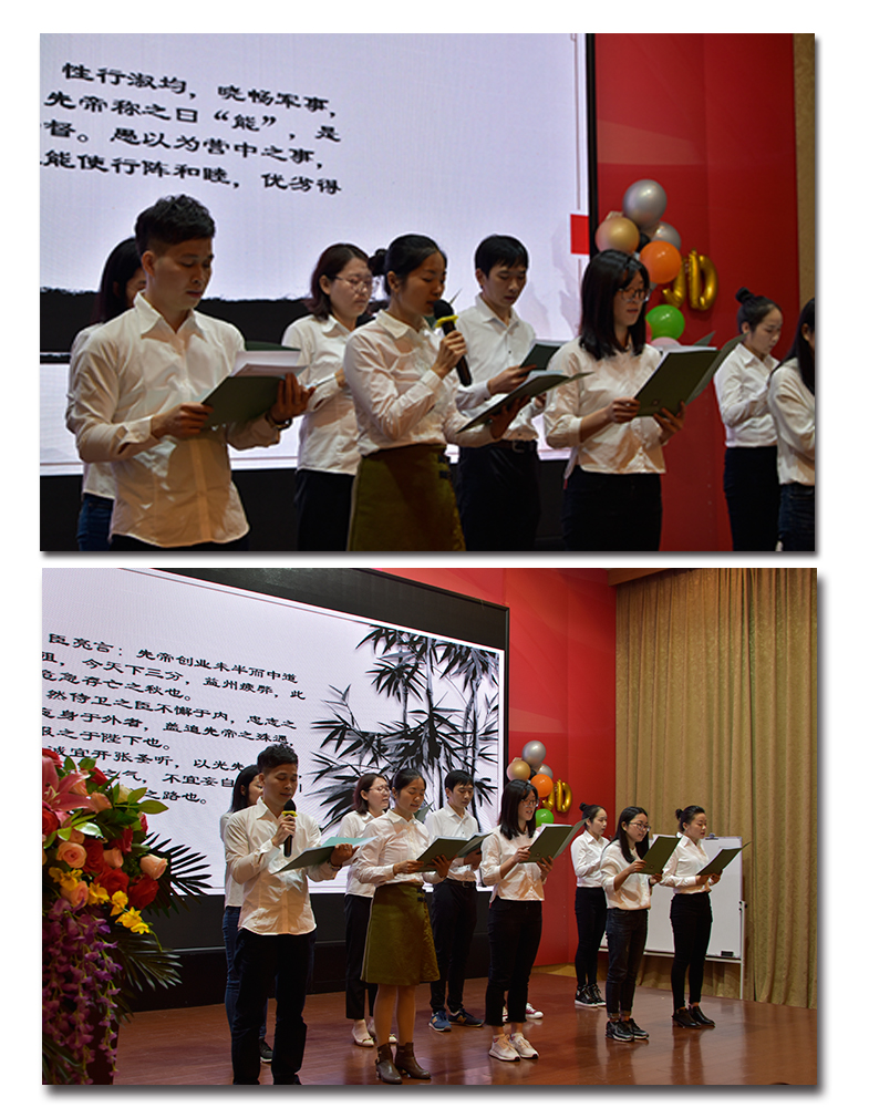 經過一個約摸小時的精心布置,會場一片喜慶洋洋的氣氛,在這里要夸夸會場布置的小伙伴,小手兒啊真巧。九點時分,現場已是座無虛席,很是熱鬧。突然,音樂響起了歡快的音樂,只見我們主持人邁著優雅的步伐緩緩地走上舞臺,用她那鏗鏘有力的聲音宣布:“海藍機電2019年年會正式開始”。